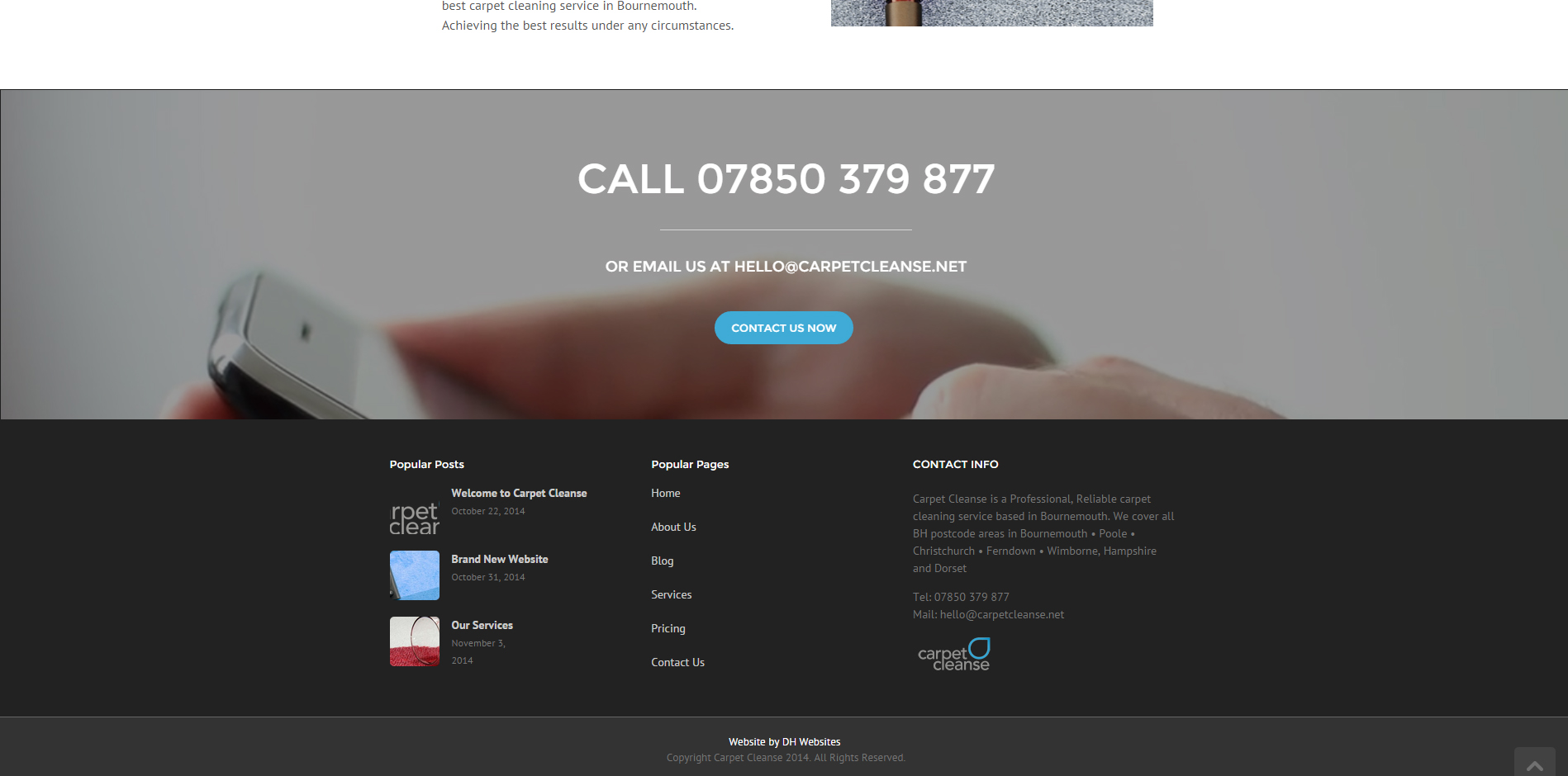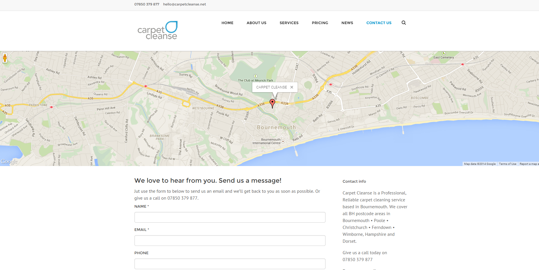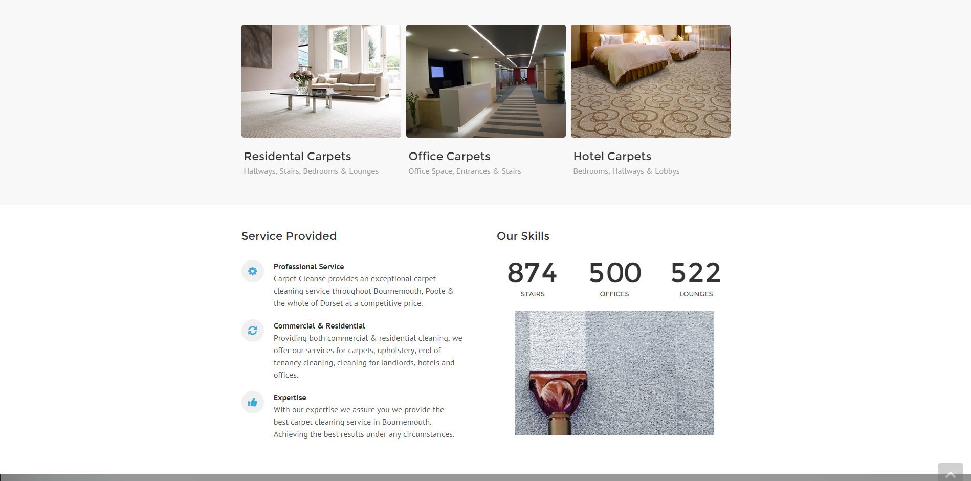 We’ve been working on the Carpet Cleanse website for a few weeks now, Neal decided it was time to set up his own business and chose us to do his website. As a new business, we had no previous information to go on, so all copy and business photography was brand new.