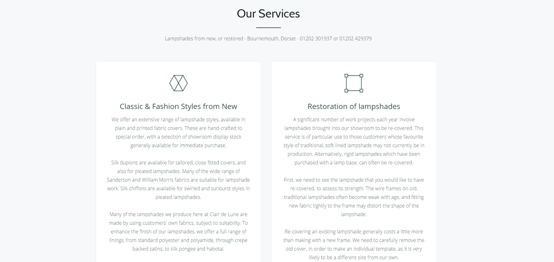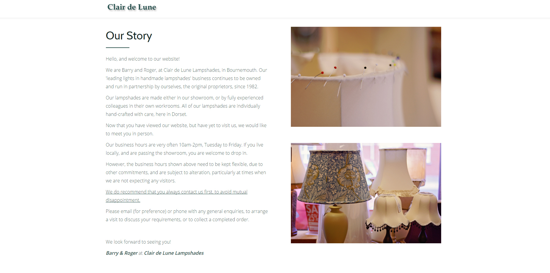 We’re absolutely delighted to have launched a new website for Clair de Lune Lampshades in Southbourne, Dorset. The business, run by Barry and Roger, Make, Restoration & Retail of traditional hand-crafted lampshades and have been doing from their Southbourne Retail Shop since 1982!!