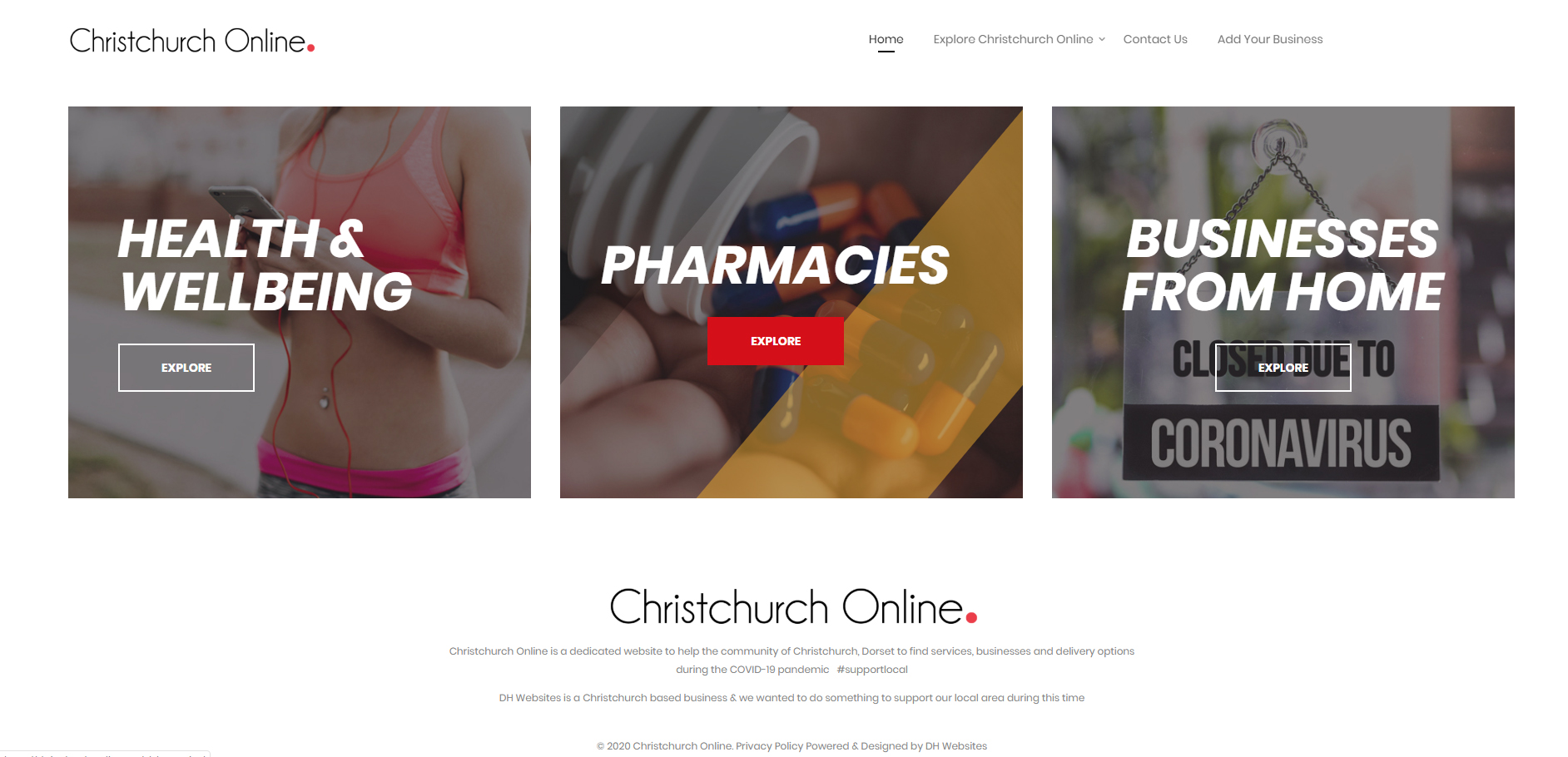 * Dedicated website to help the community of Christchurch, Dorset during COVID-19 find local, small businesses still open, serving and delivering.