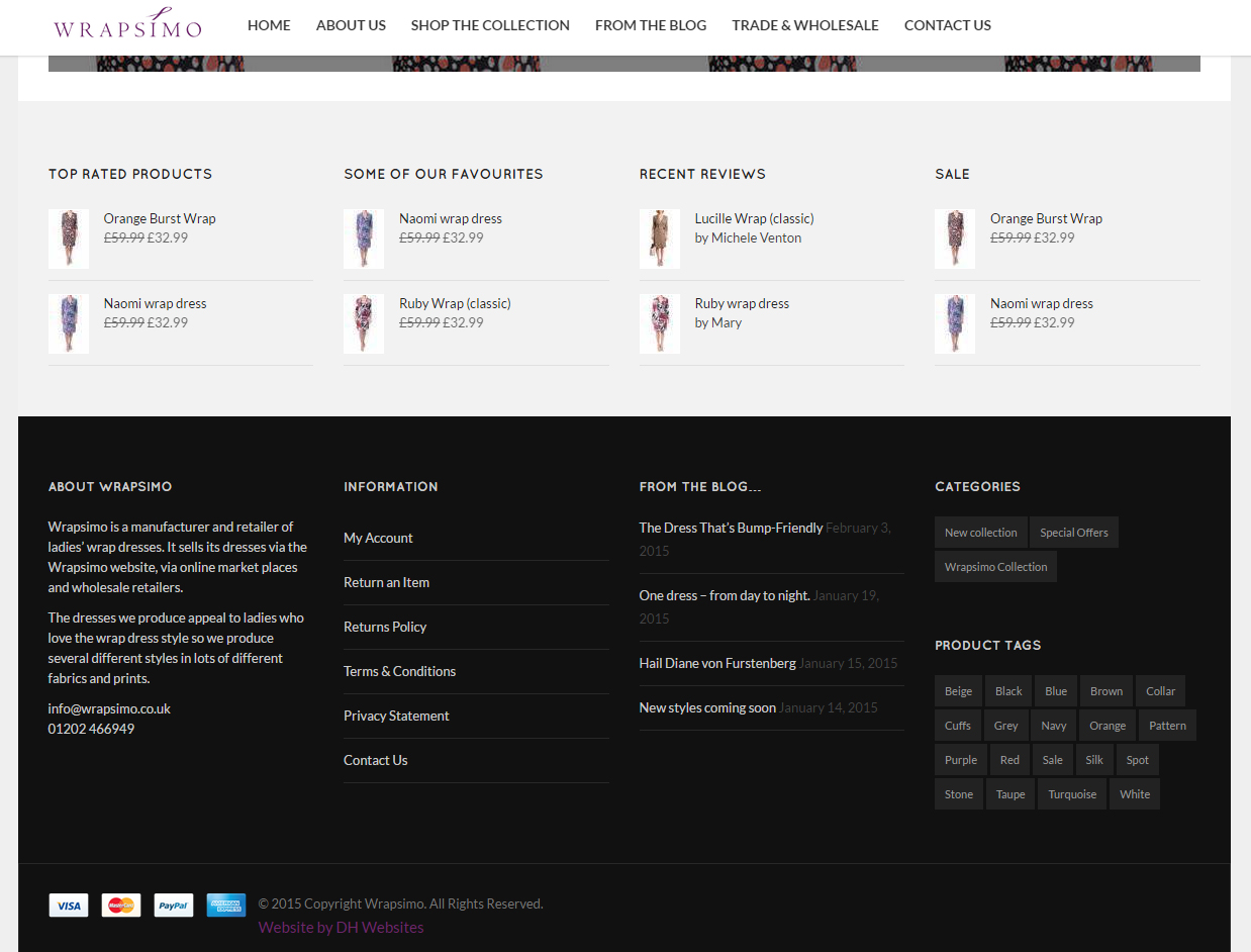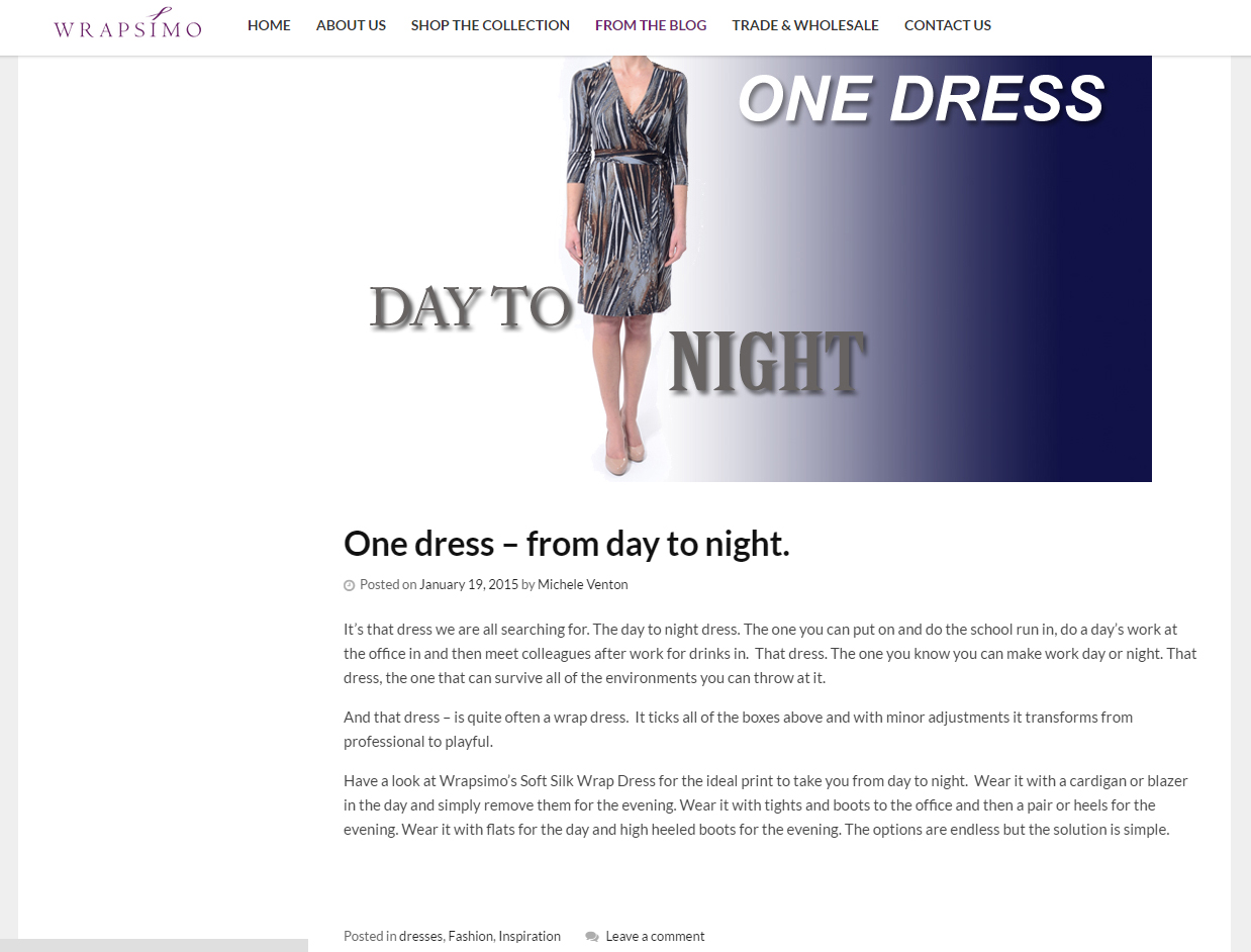 Wrapsimo is a manufacturer and retailer of ladies’ wrap dresses based in Dorset. They wanted a comprehensive website to sell their dresses, advertising they offer trade sales as well as showcasing tips & hints on wrap dresses, style and inspirational blogs, along with an editorial feel to the whole site.